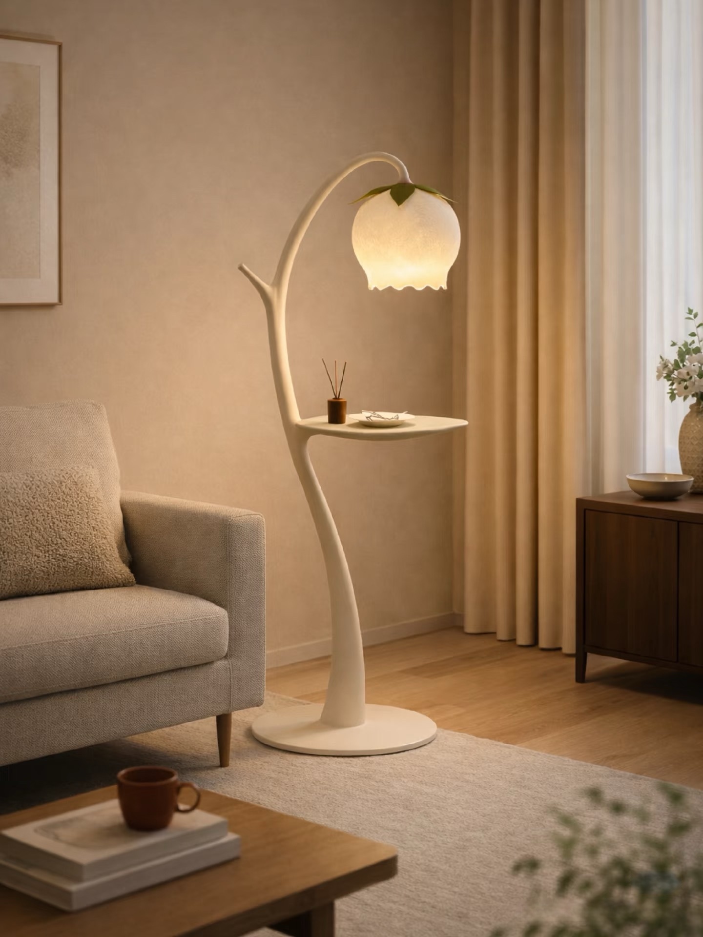 下延伸出的托盘,如同枝叶停靠的瞬间,承载日常的小物与片刻的安静。